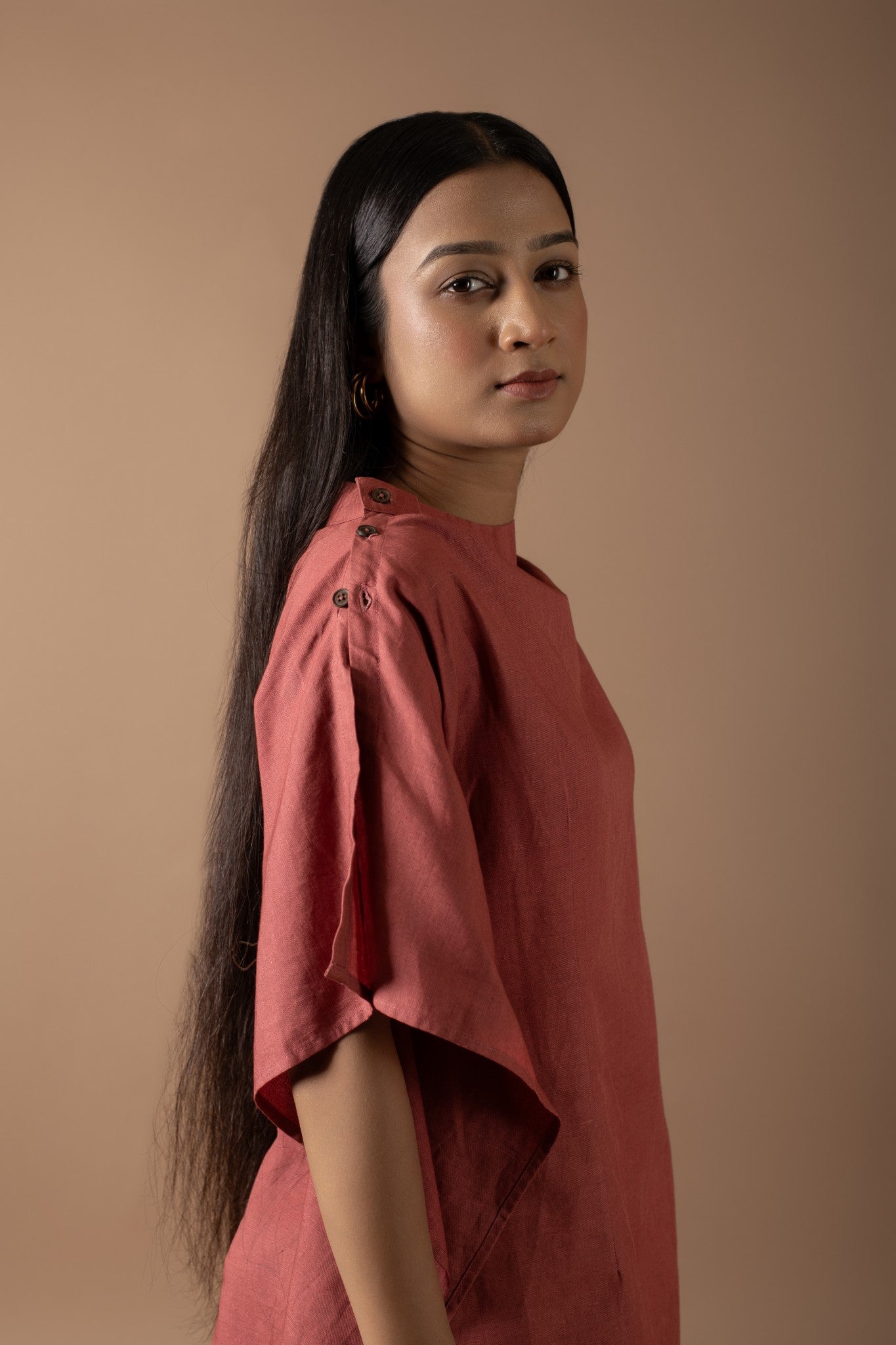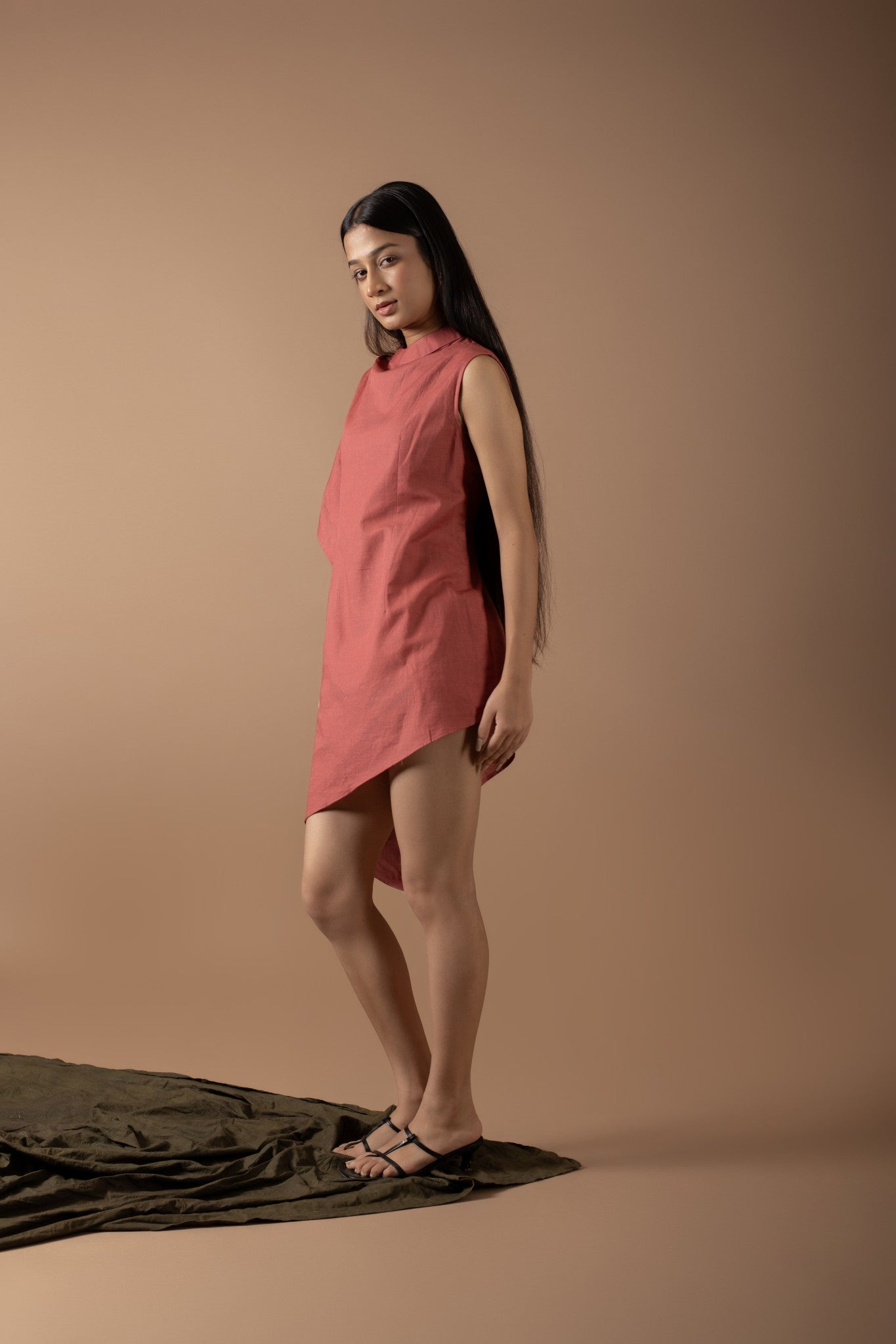 Introducing a kaftan styled asymmetrical dress, the design includes an offbeat hemline, and a relaxed, high neck finish for a modern edge.