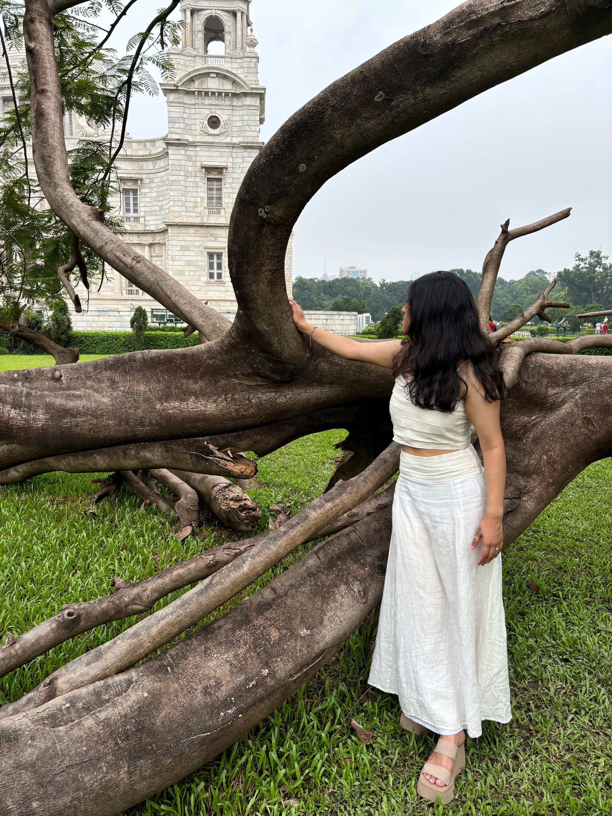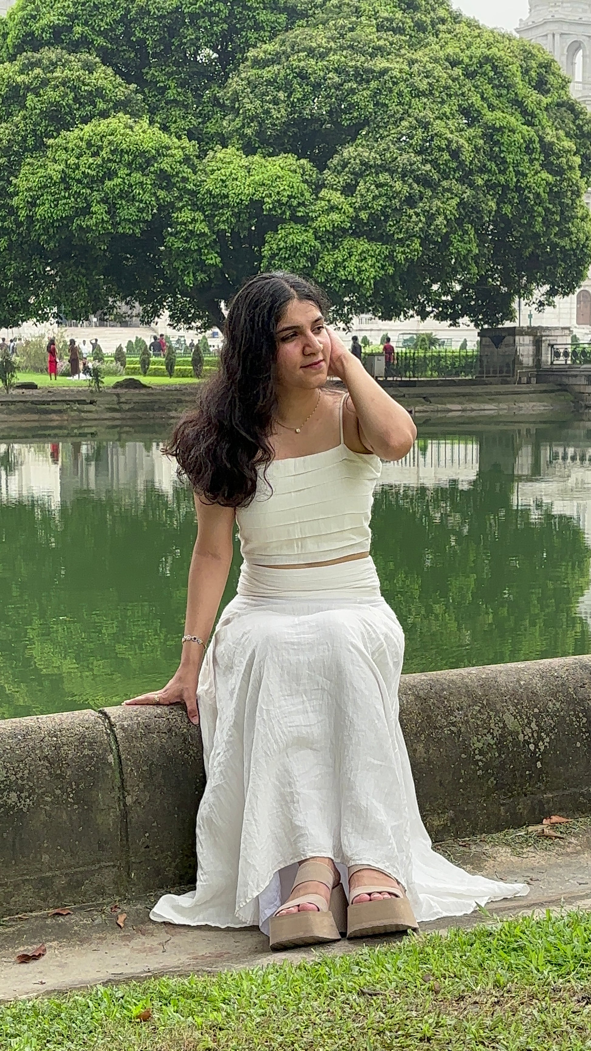 Introducing this off white skirt set which has a layering details on the top and the skirt waist which you can easily carry with your grace and some confidence..