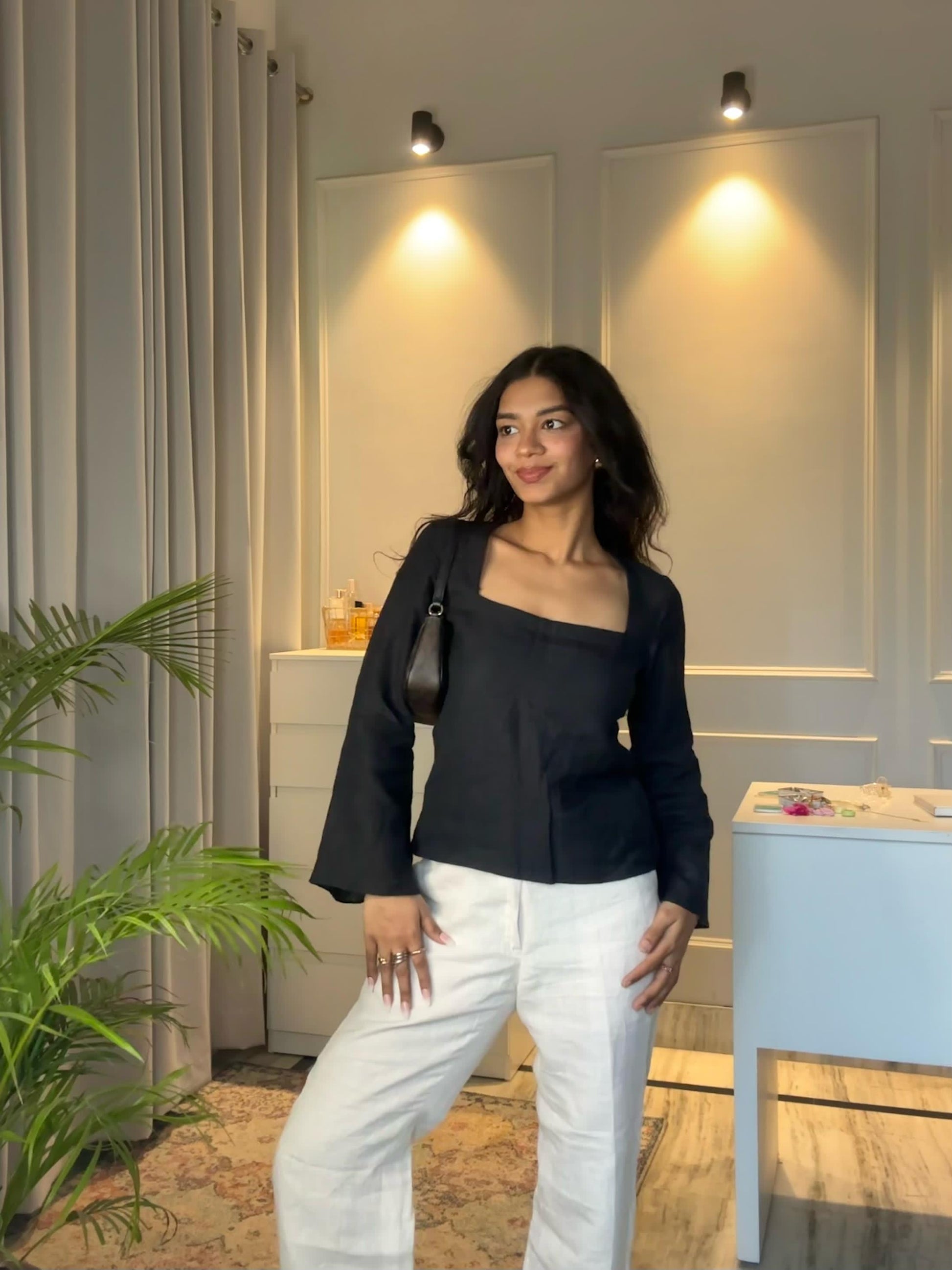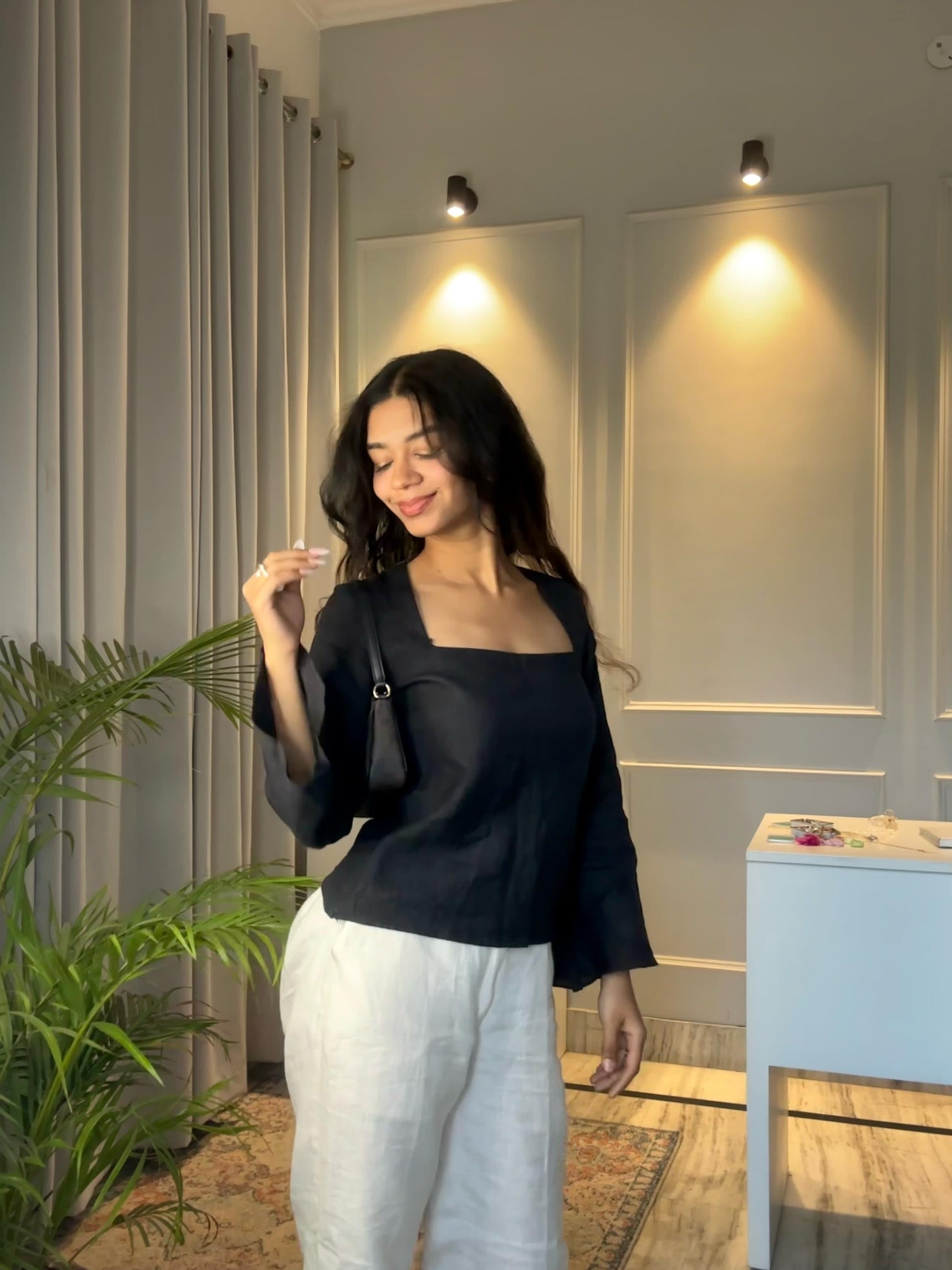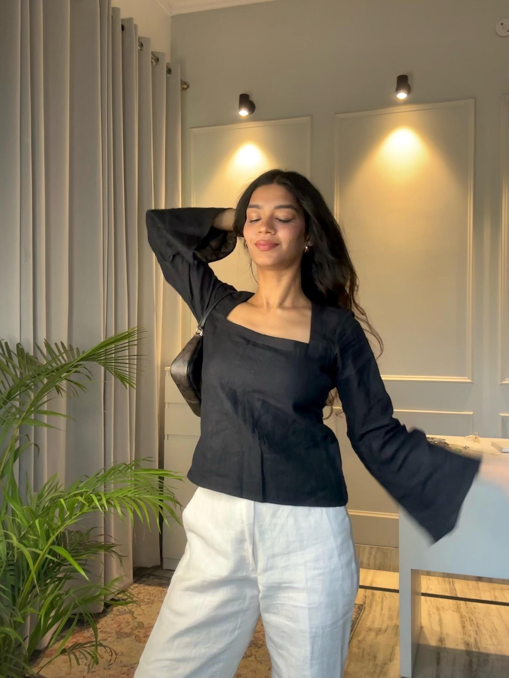 Introducing this black bell sleeved anne neckline top which is very comfortable for your office wardrobe .